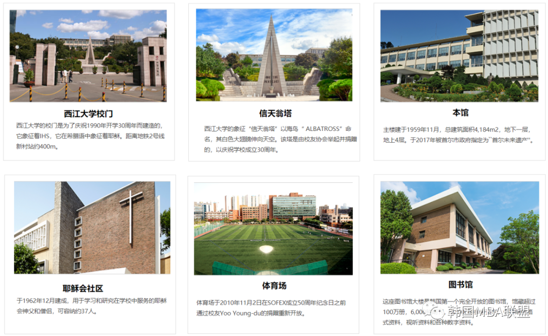 西江大学商学院是三星集团全资资助大学院,采取校内学习+校外探访模式, 每学期都进行校外知名韩国企业探访,塑造应用型人才;